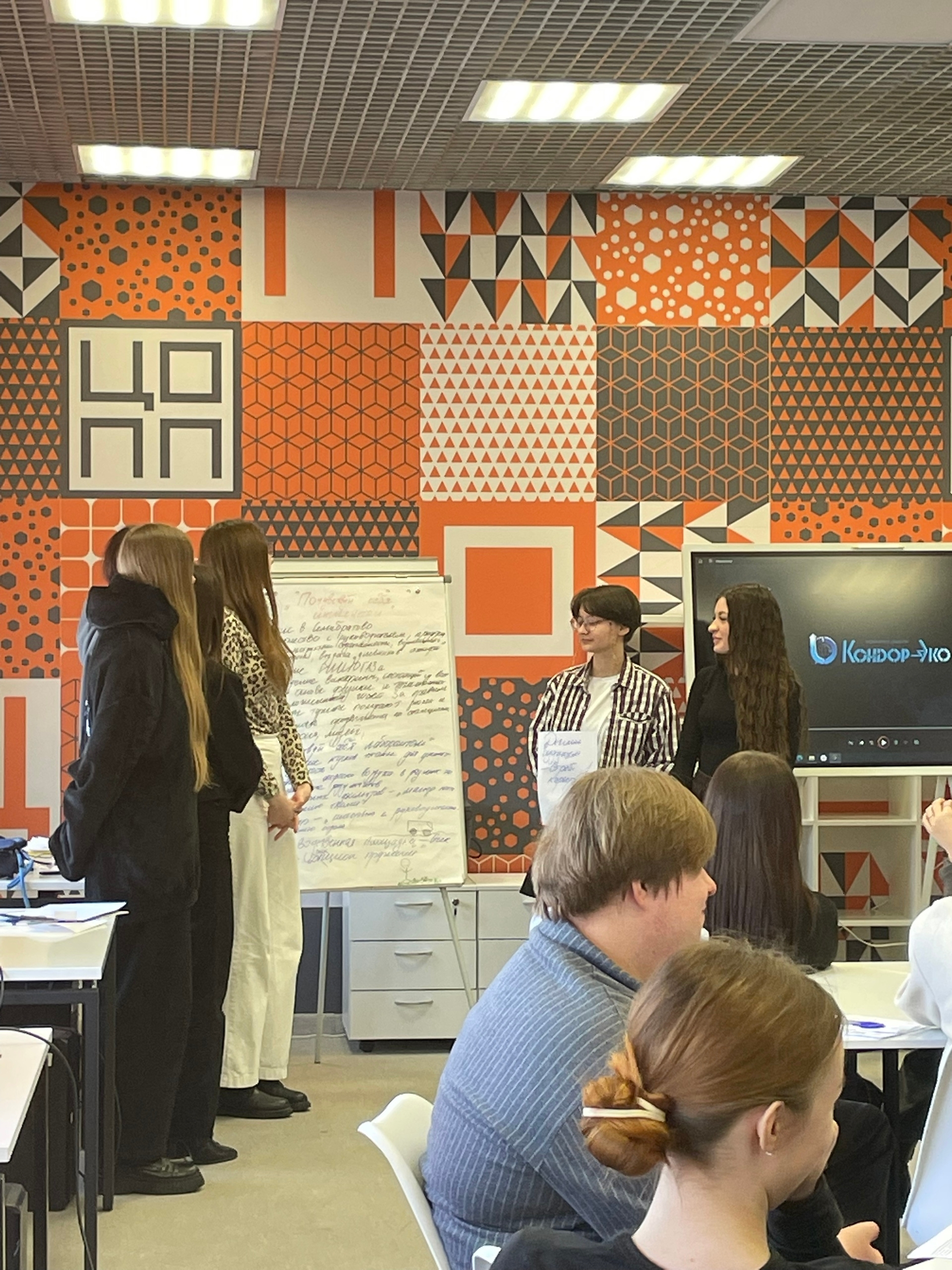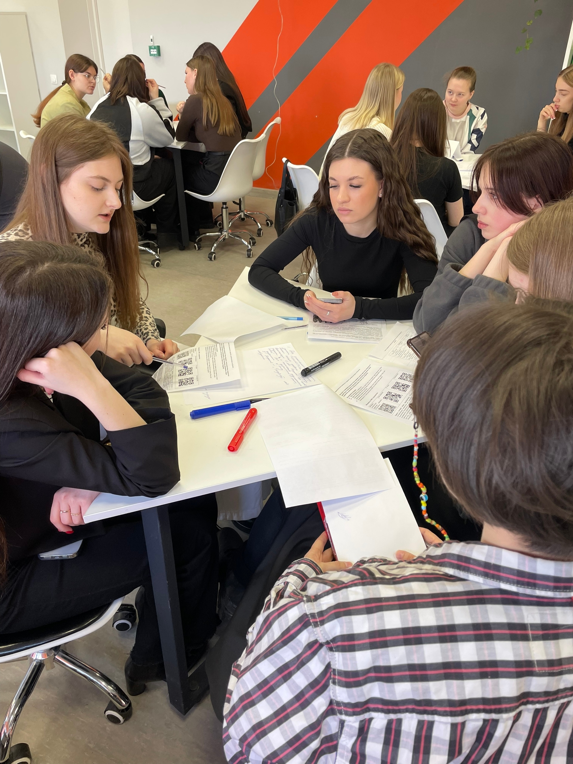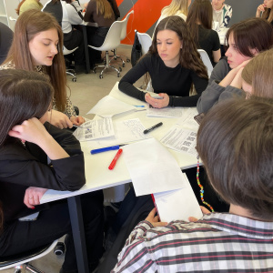 Первая часть мероприятия прошла в формате «Мировое кафе. Студенты были разбиты на команды и обсуждали ключевые вопросы за столами, меняя состав групп. Это обеспечило активное вовлечение каждого участника в процесс, формирование новых подходов к задачам и создание творческой атмосферы.