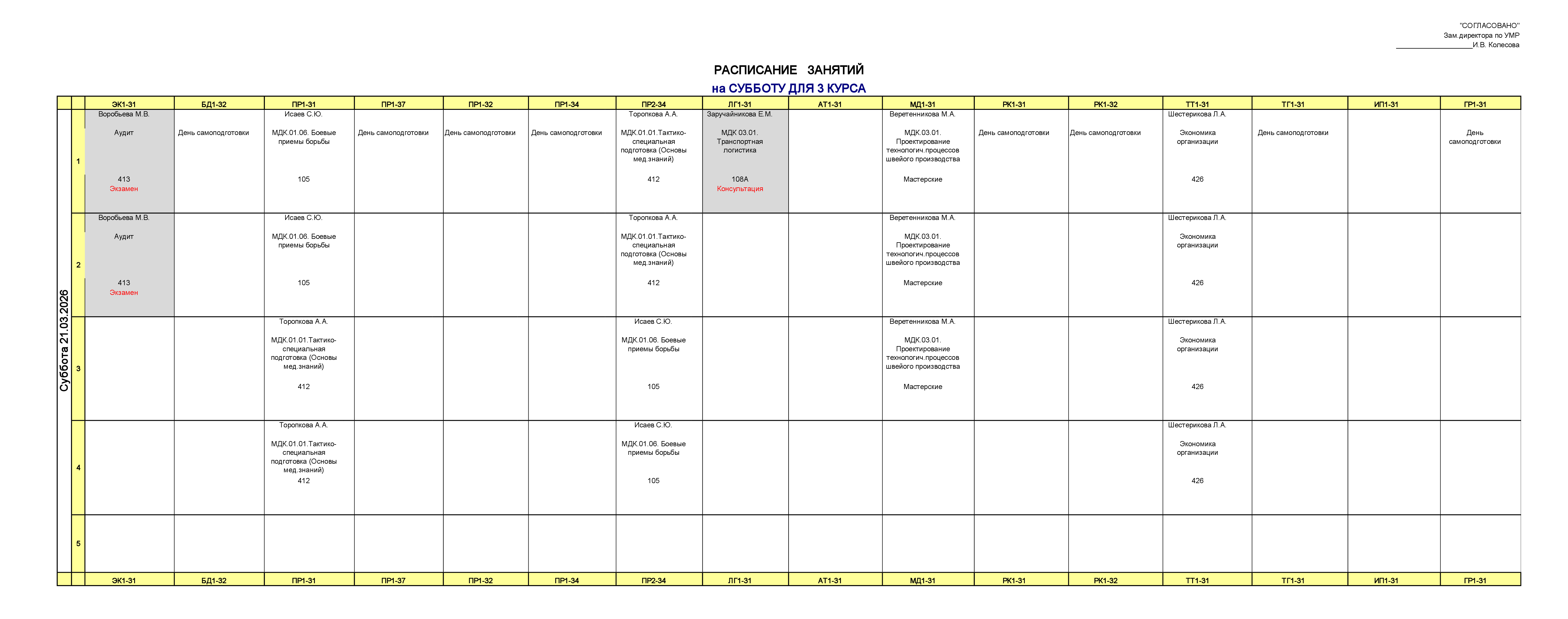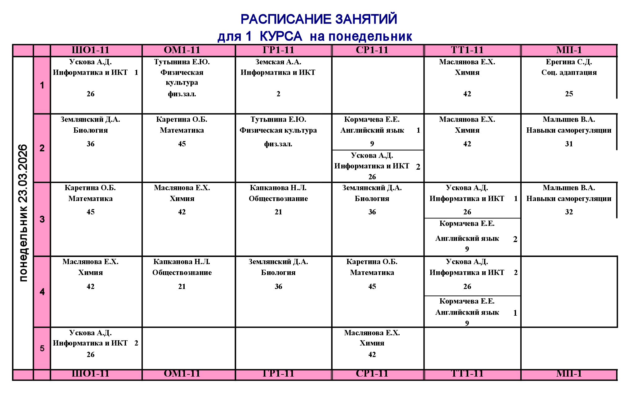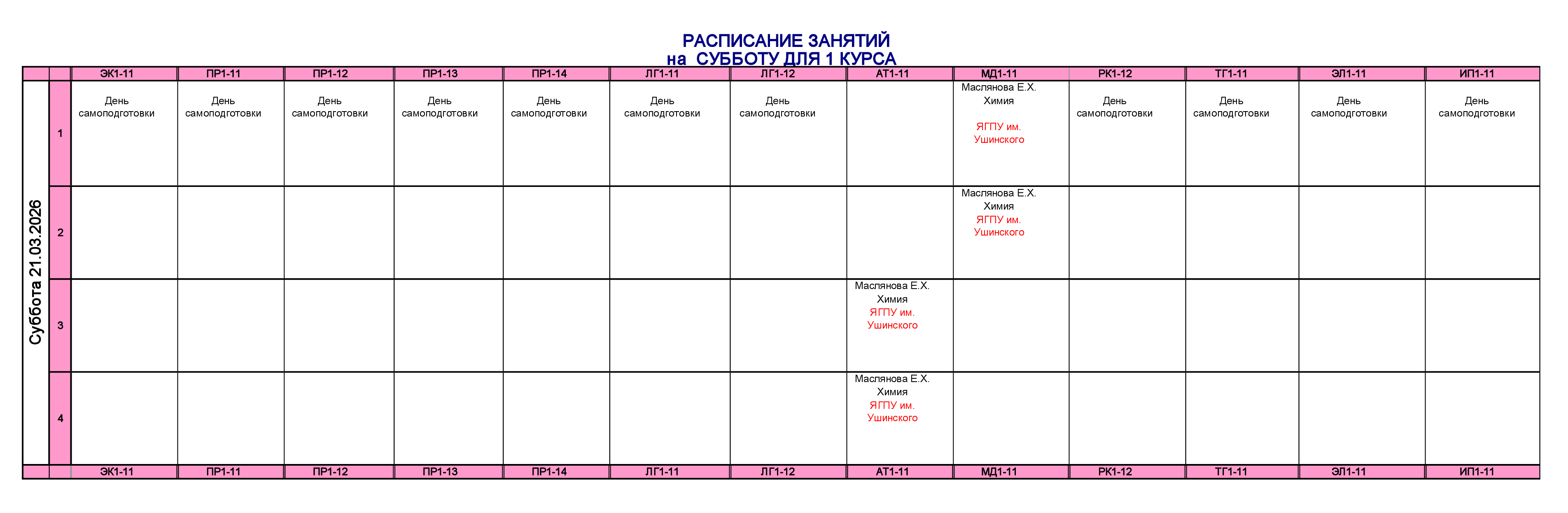 Расписание занятий для учебного корпуса №1