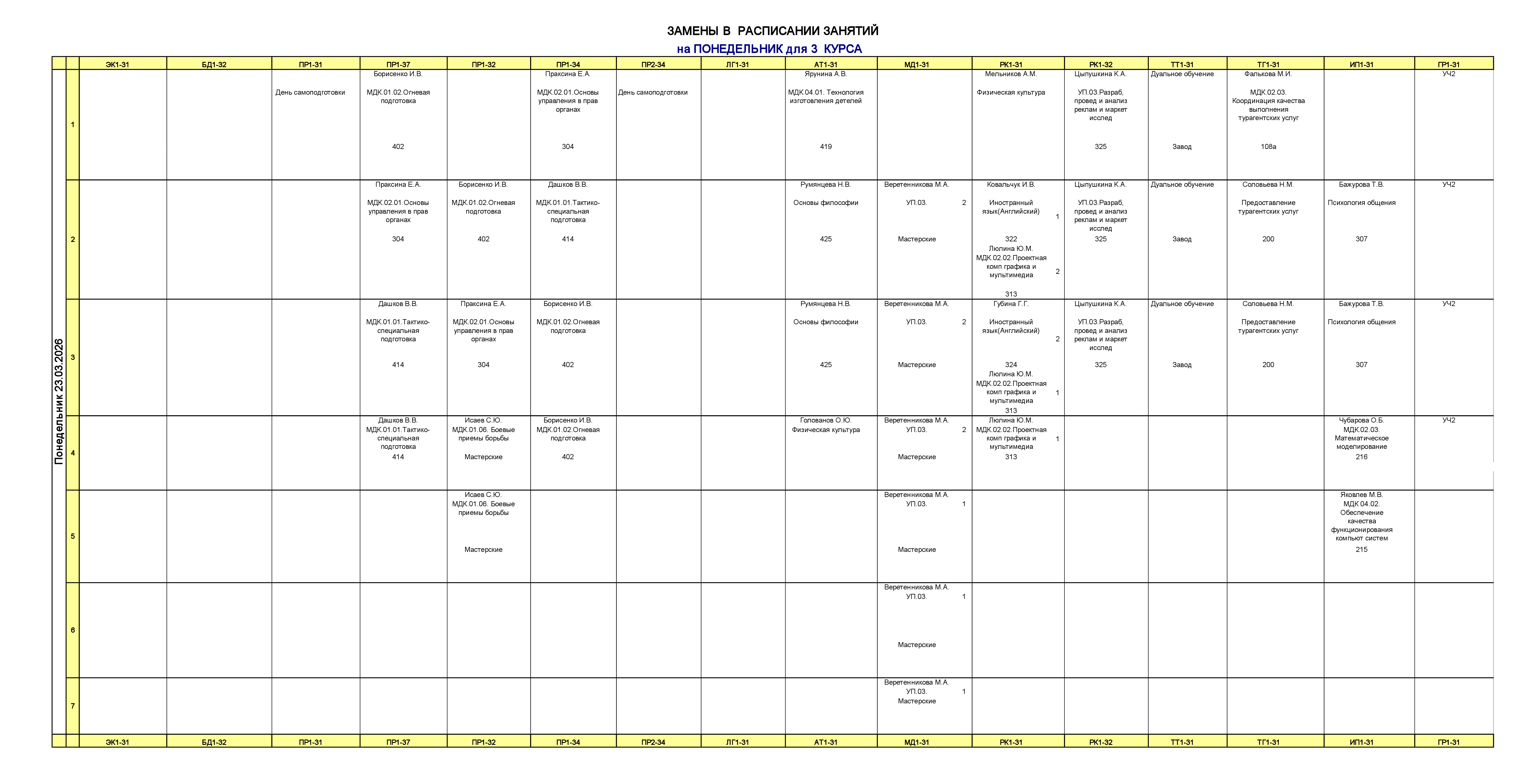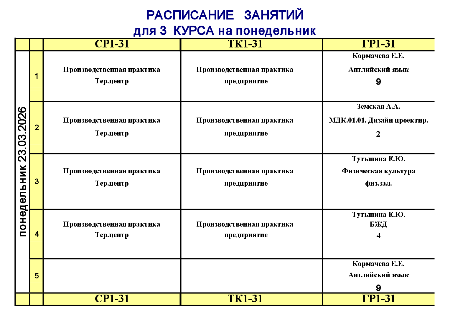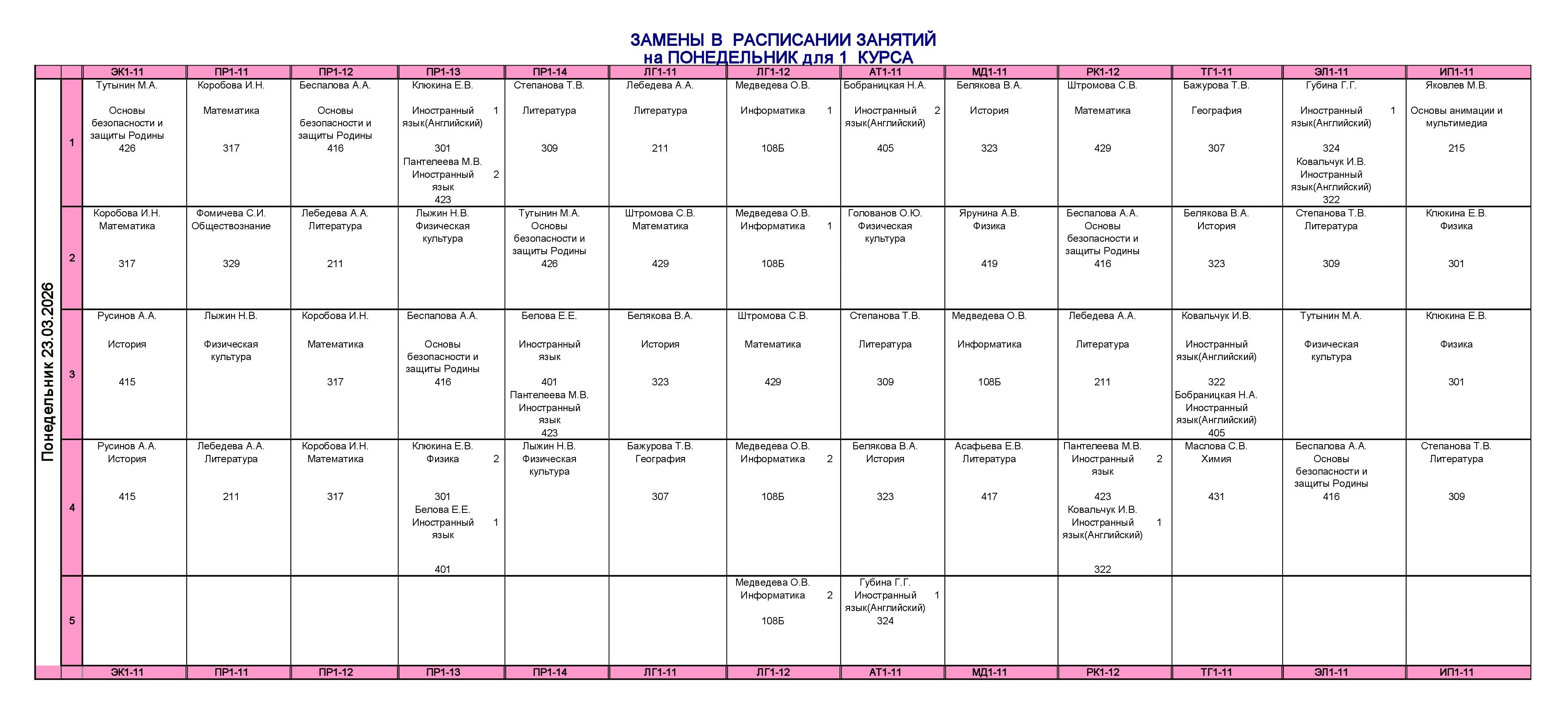 Расписание занятий для учебного корпуса №1