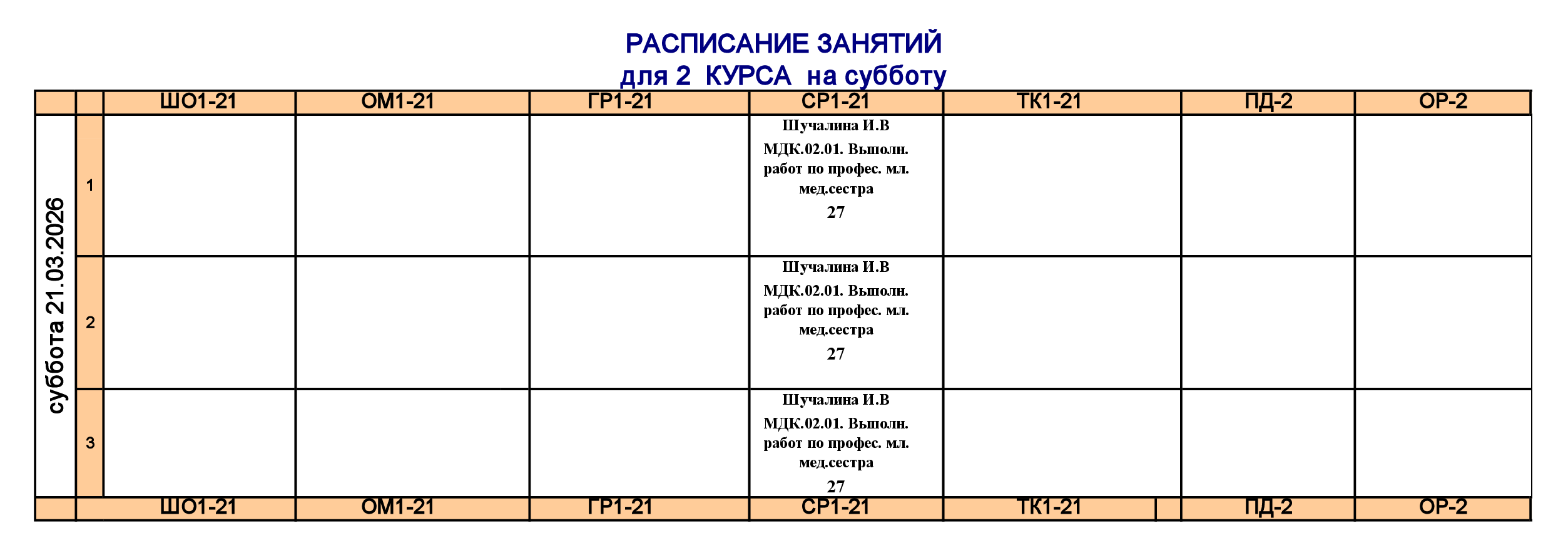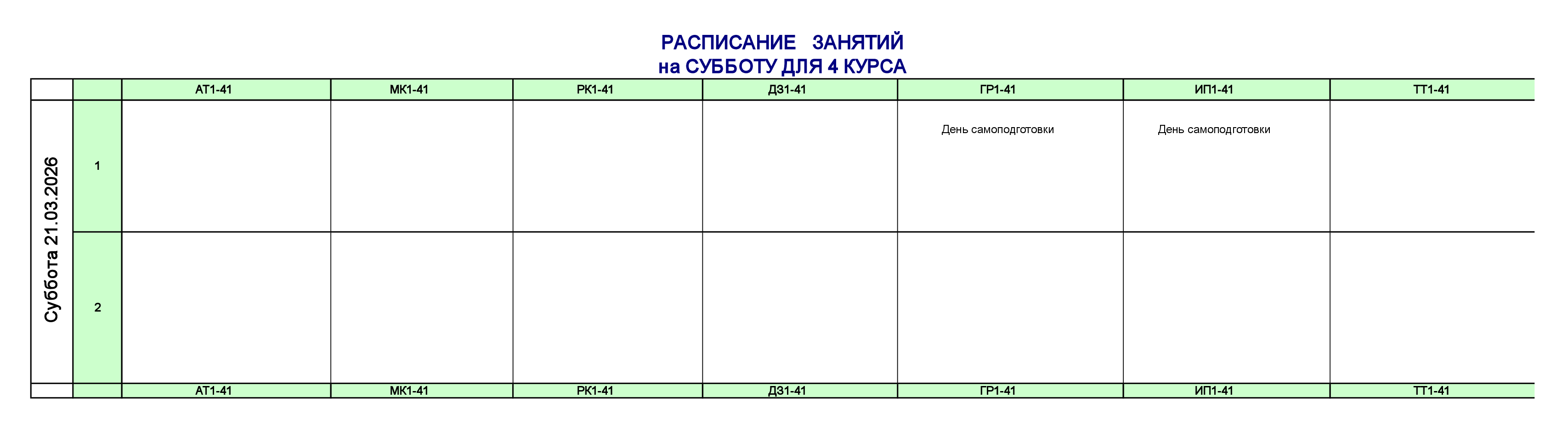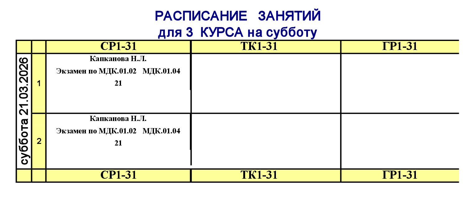 Расписание для очного отделения
