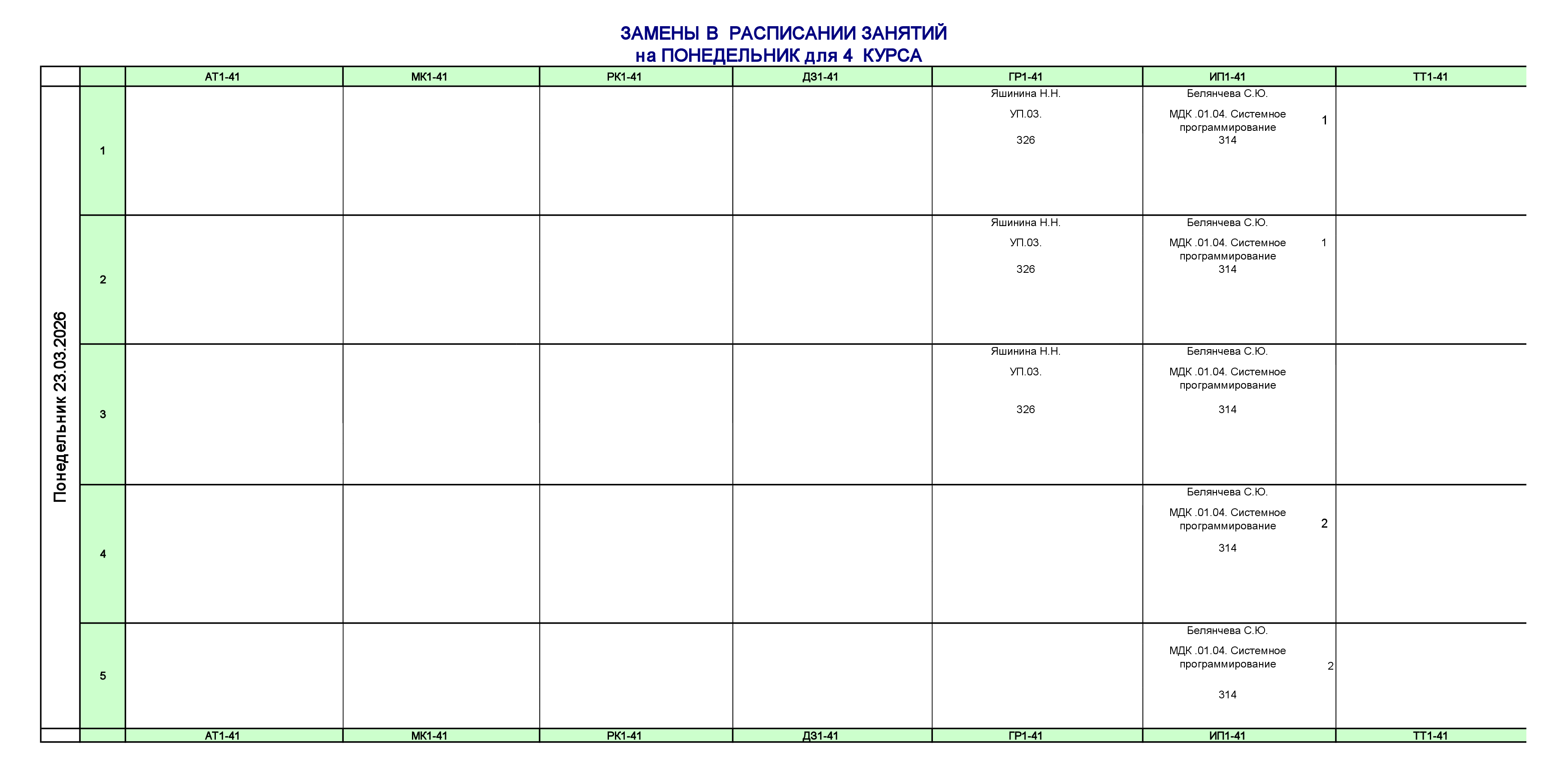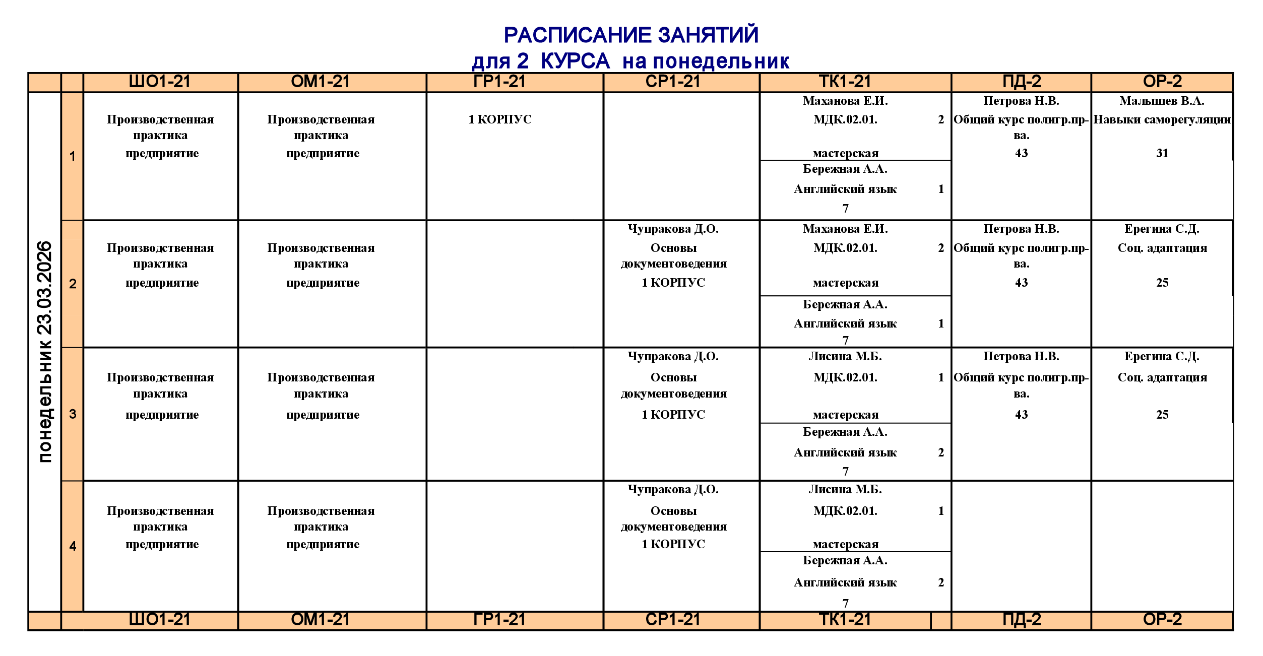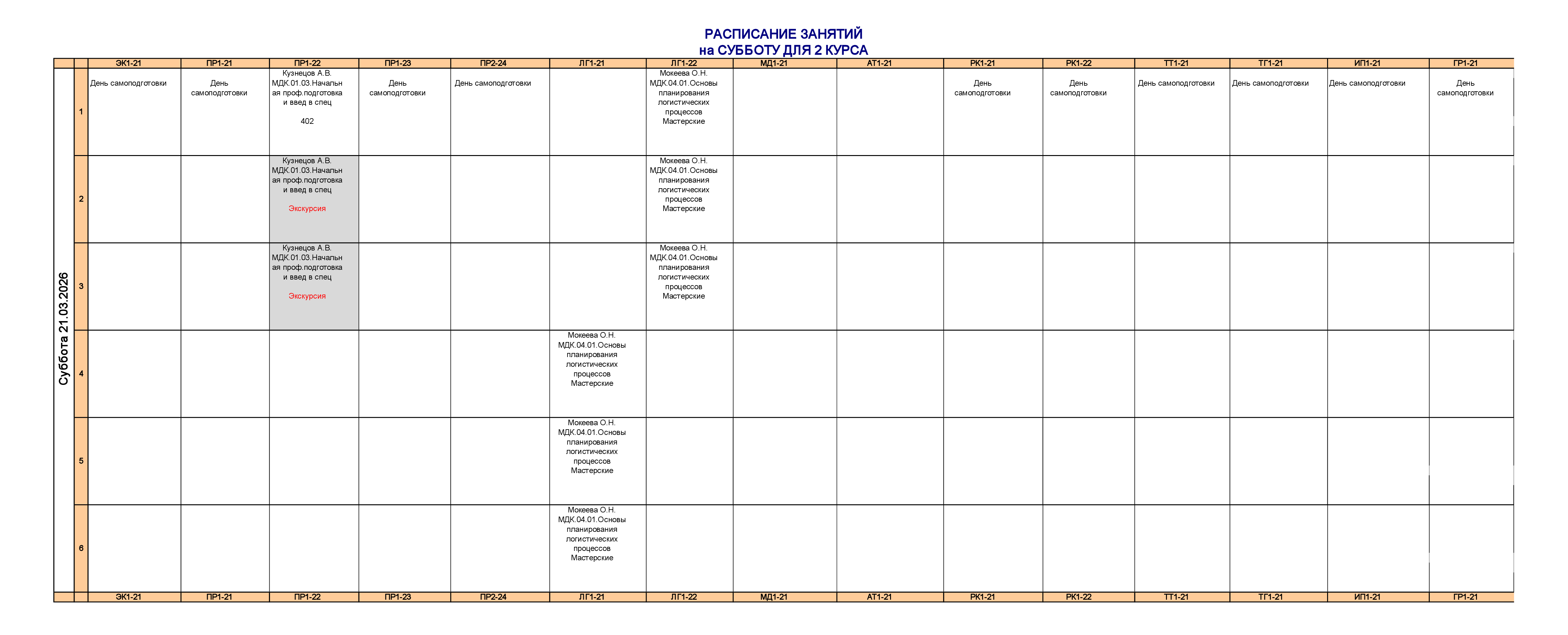 Расписание для очного отделения