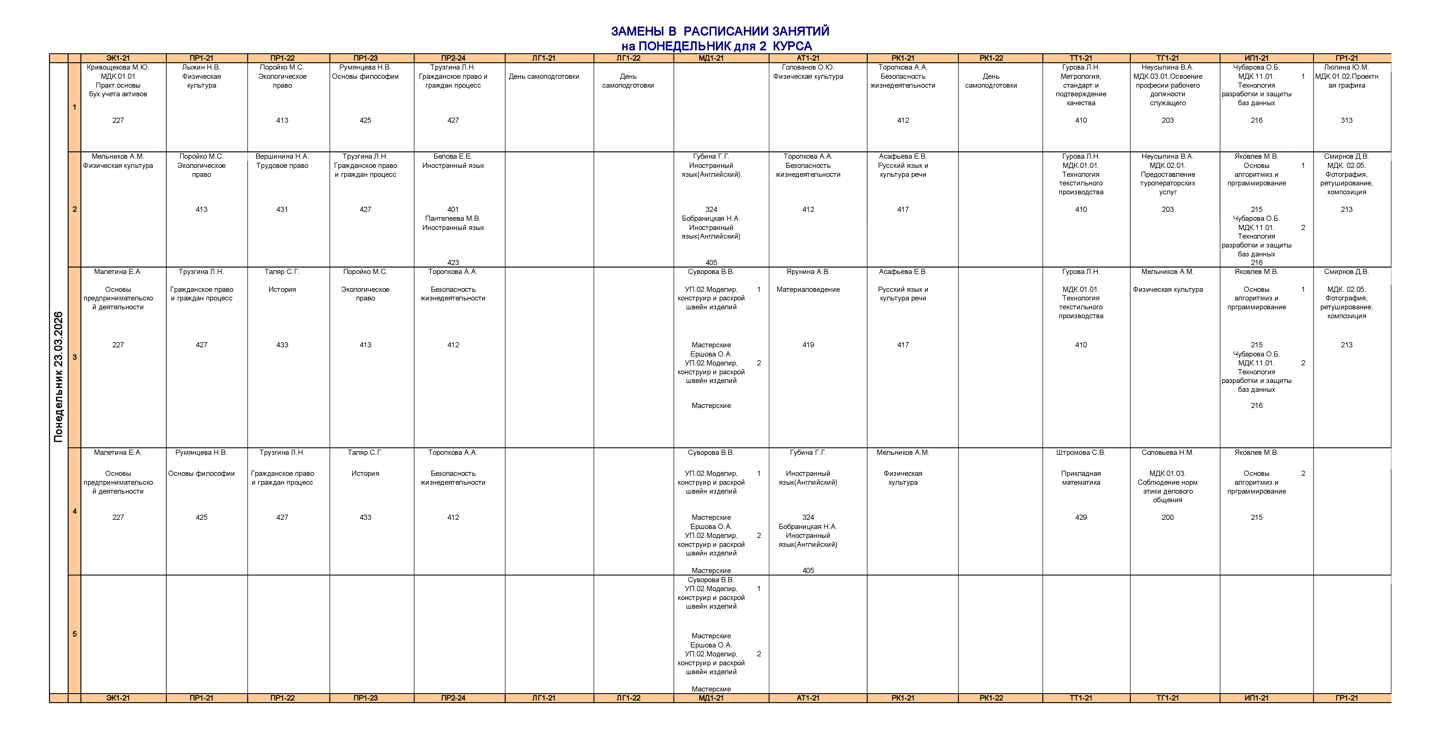 Расписание занятий для учебного корпуса №2