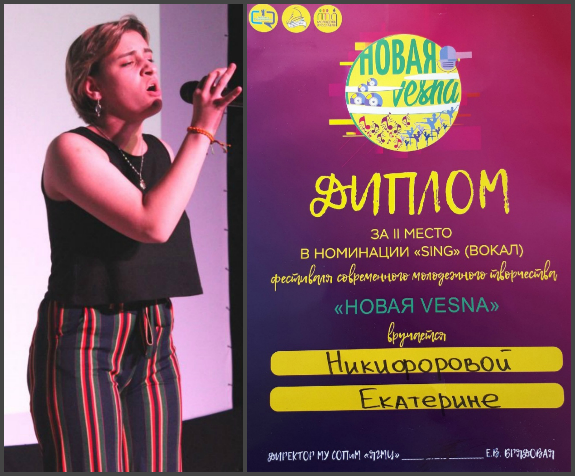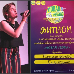 В этом году мы приняли участие в номинации "Вокал", которая стала успешной для студентки гр. МК1-11 Никифоровой Екатерины (творческий псевдоним — Noel): она заняла II место.