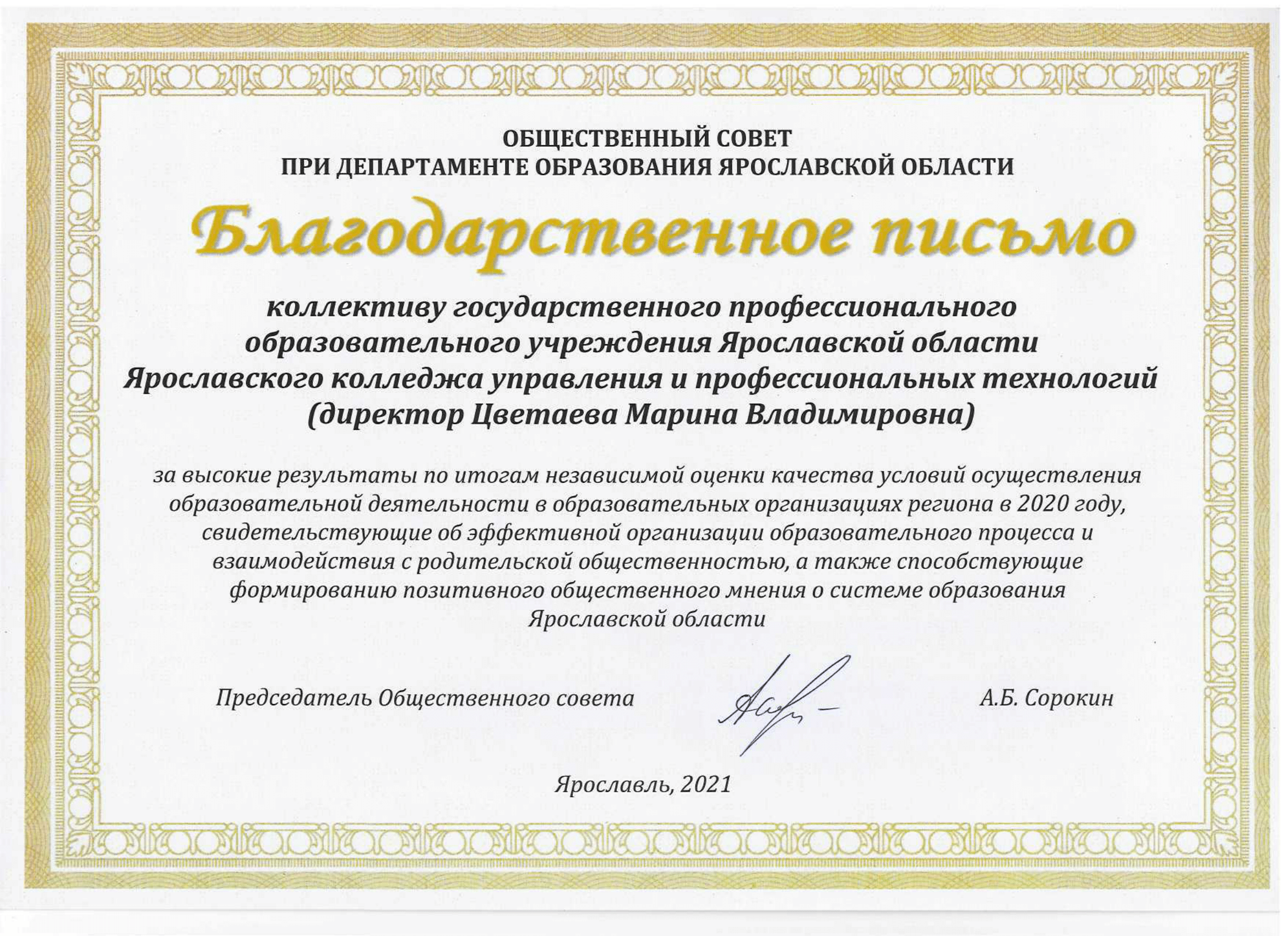 От всей души благодарю каждого за неоценимый вклад в развитие нашего колледжа!