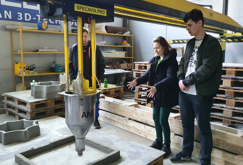 05 марта обучающиеся группы АТ1-21 в сопровождении педагогов Карасёва А.Е. и Гущиной Н.С. побывали на предприятии «АМТ-СПЕЦАВИА», которое запустило первое в Европе и СНГ серийное производство строительных 3D-принтеров.