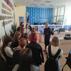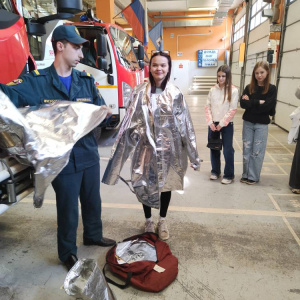 Студенты посмотрели фильм о том, как тренируются, учатся и живут пожарные и спасатели; узнали, что на сбор по тревоге им даётся всего одна минута, в течение которой наряд должен одеться, обуться, сесть в машину и выехать на место пожара.