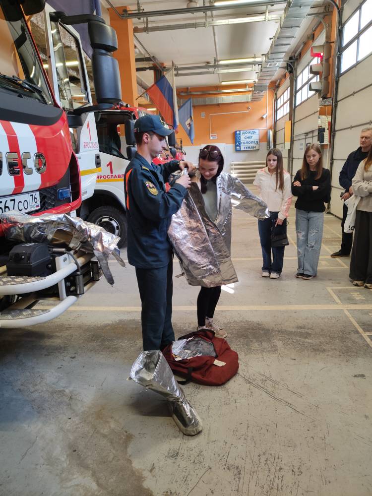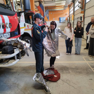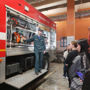 Особое впечатление произвёл гараж и помещения для личного состава, где экскурсанты познакомились с оборудованием пожарных автомобилей, примерили специальные костюмы, посетили комнату отдыха, посидели внутри пожарной машины и даже стали свидетелями выезда наряда на пожар.