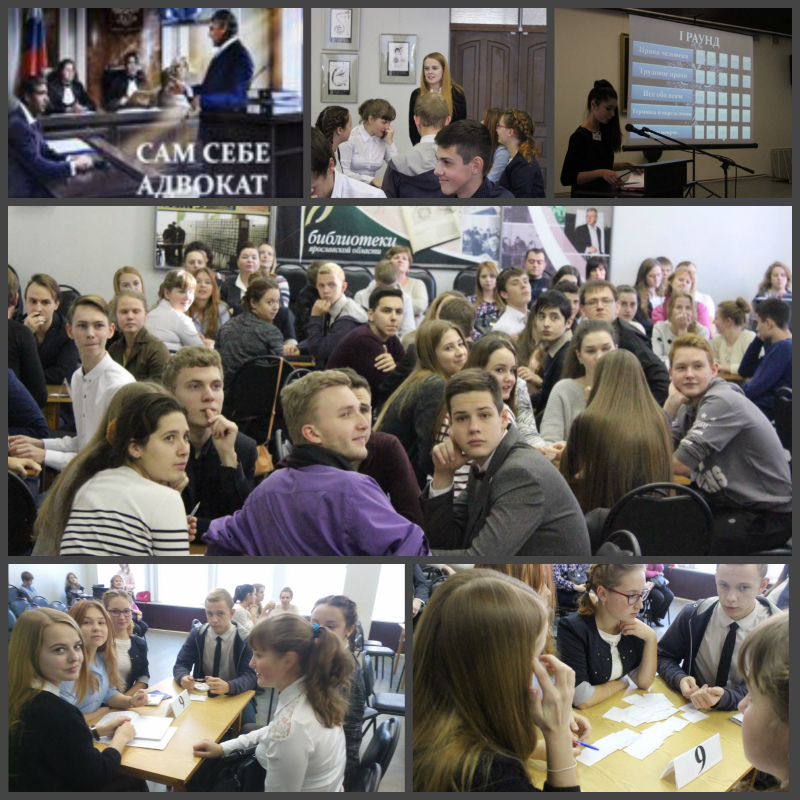 В Ярославле прошла интерактивная игра по формированию правовой компетенции и культуры несовершеннолетних «Сам себе адвокат». Юные участники игры должны были проявить свои знания о правах человека, о судебной системе Российской Федерации, о правах учащихся, об истории права.
