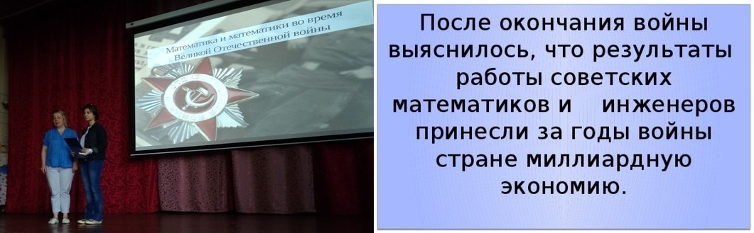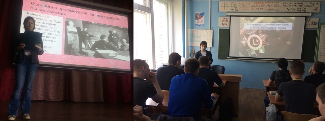 О Великой Отечественной войне рассказывают по-разному, но, как правило, в привычном аспекте. Неожиданными стали внеурочные занятия, проходившие 15-16 мая под названием «Математический журнал», у преподавателя Коробовой И.Н.