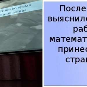 Девушки увлечённо рассказывали о вкладе математиков в победу советского народа – об использовании тех специфических знаний и умений, которыми обладают математики. Выступающим удалось заинтересовать аудиторию студентов из разных групп и пополнить их знания новой и, действительно, интересной информацией.