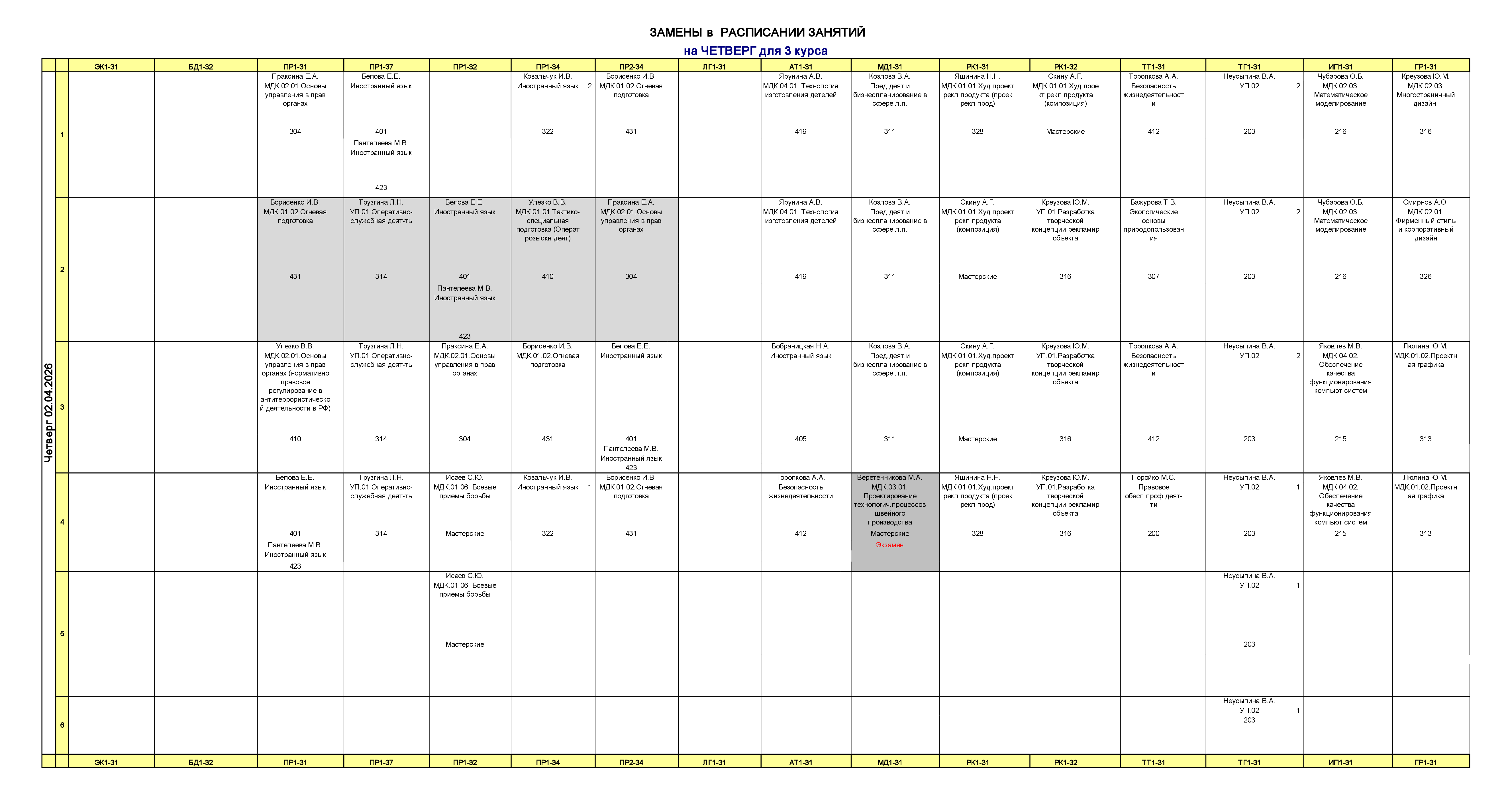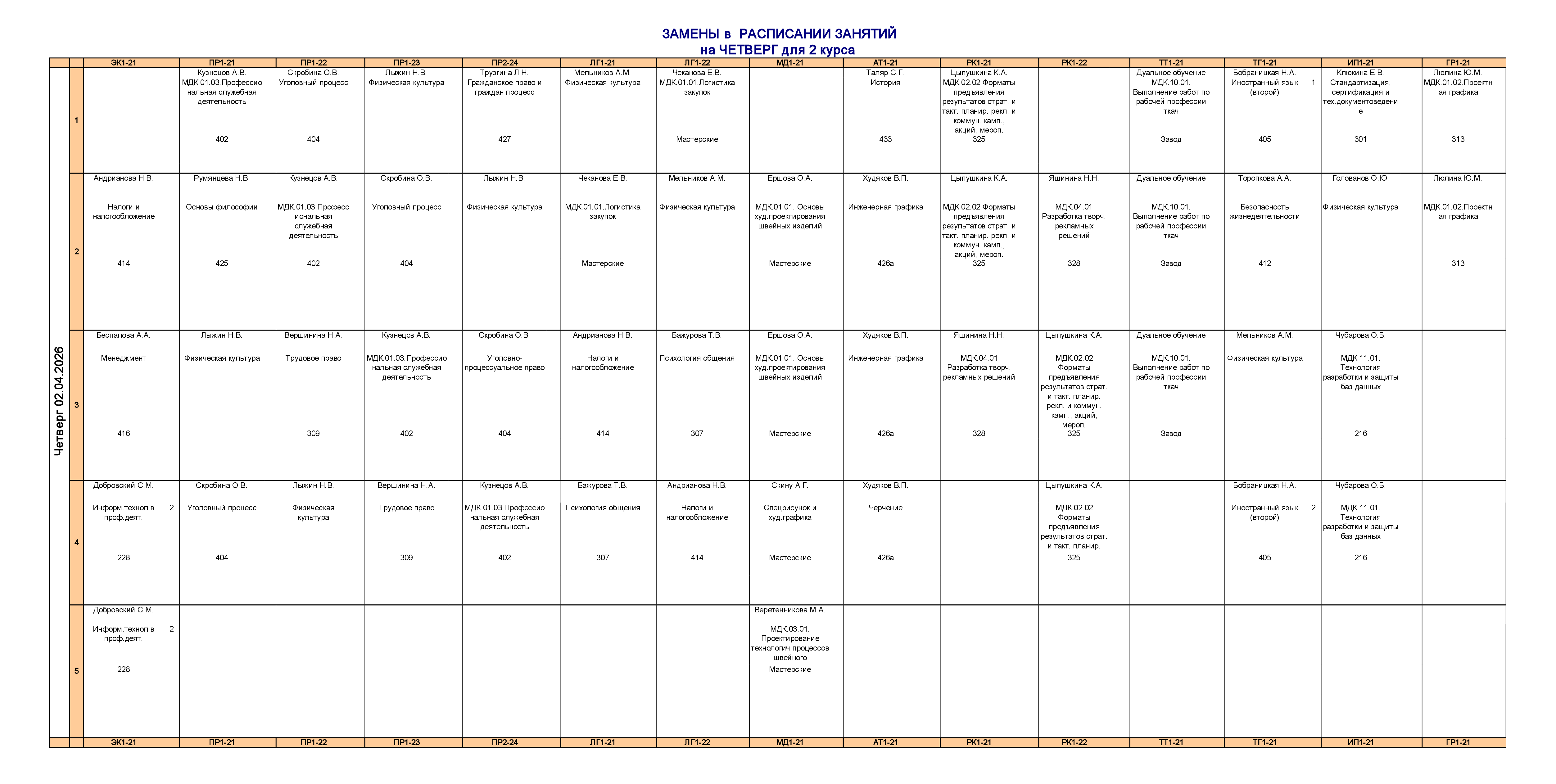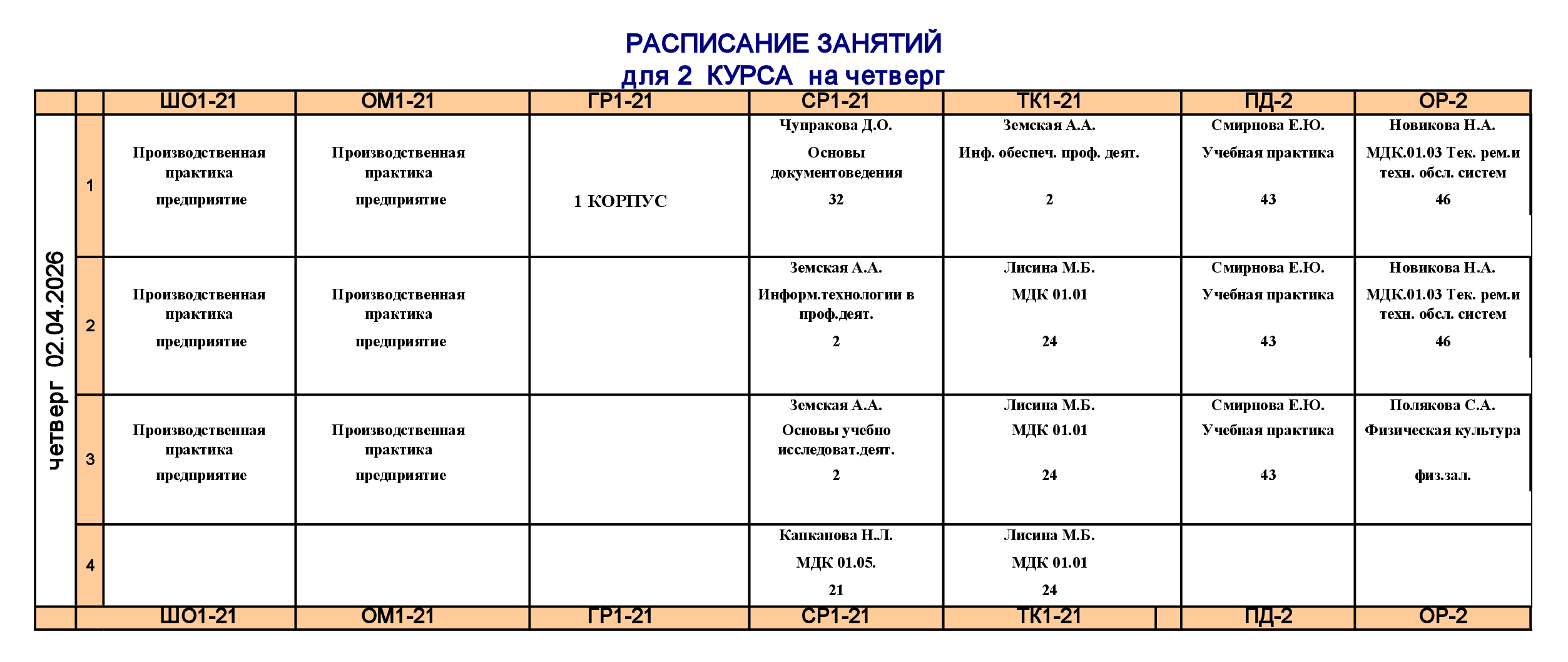 Расписание занятий для учебного корпуса №2