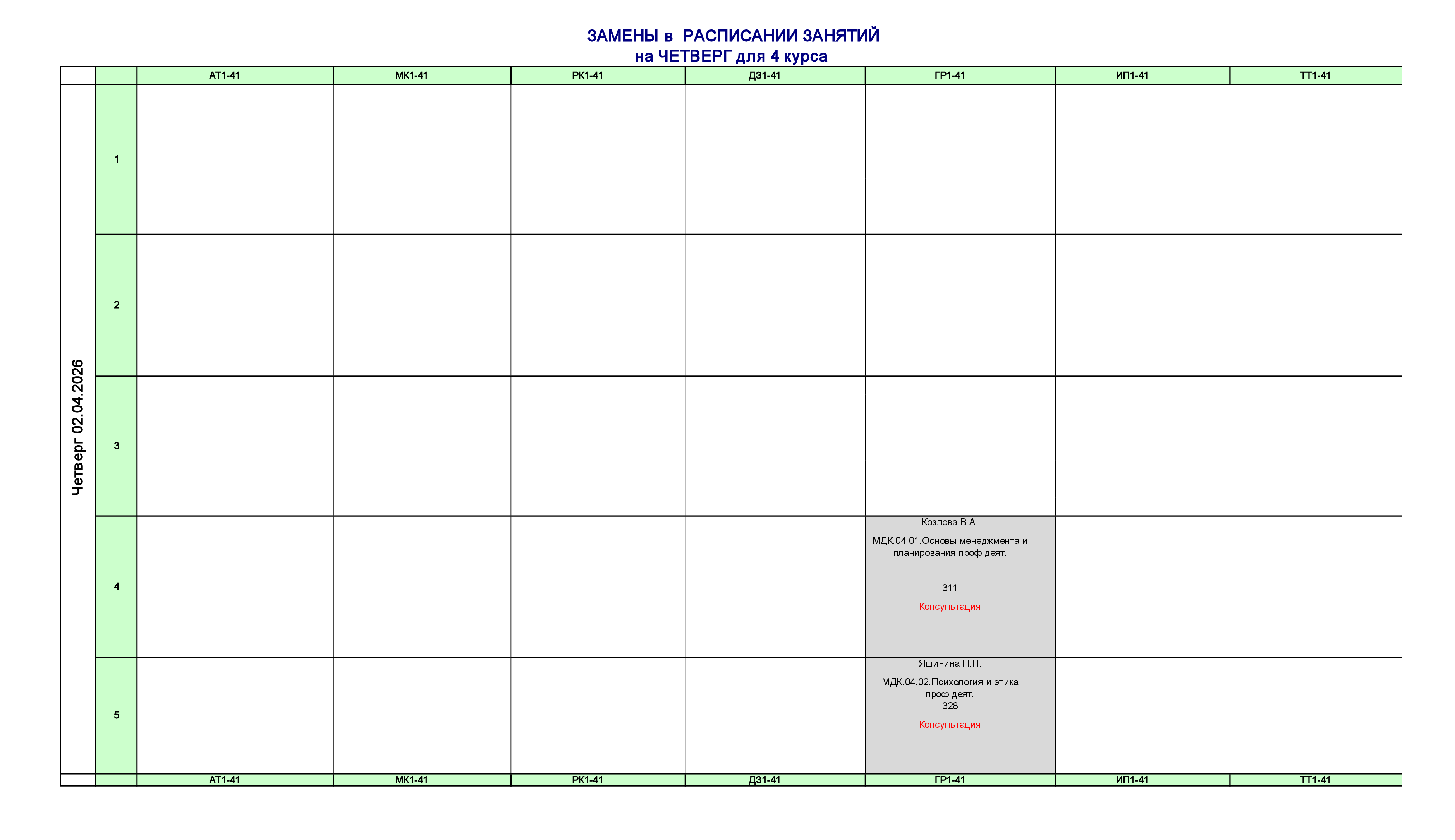 Расписание для очного отделения