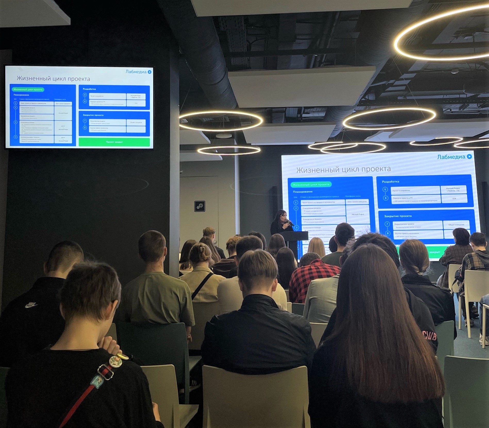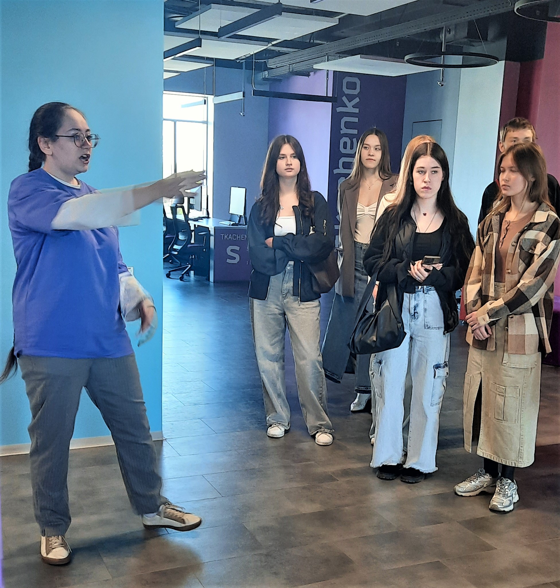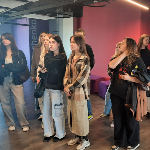 Студентам показали кампус, после чего перед ними выступила руководитель проектов компании Лабмедиа с информацией об особенностях данного направления деятельности и самой профессии.