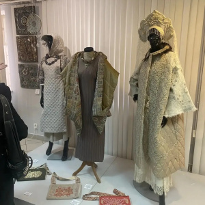 Преподаватели представили костюмы в русском стиле, броши, а студенты показали картины в технике батик-роспись по шелку.