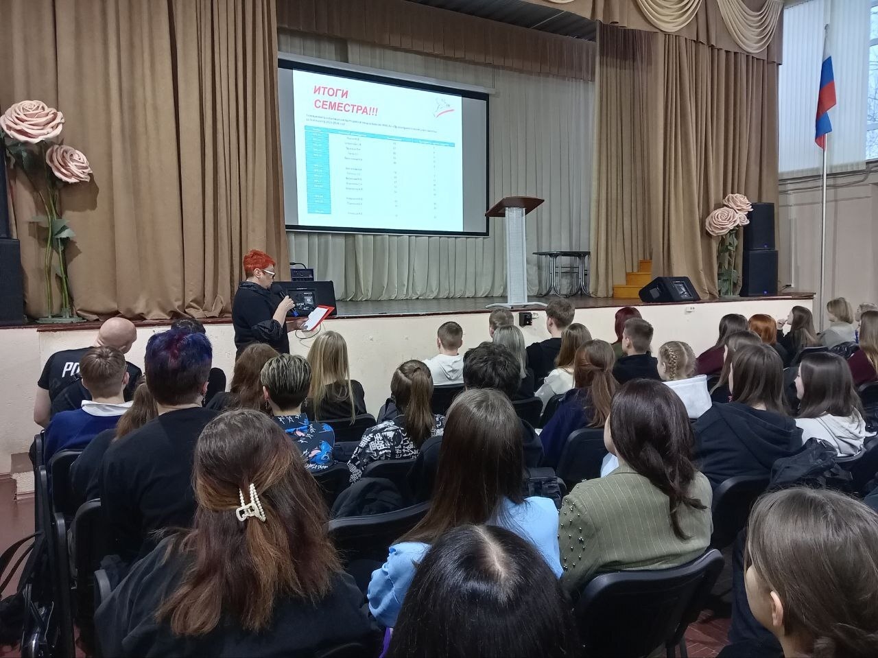Заместитель директора по УВР С.И. Фомичева совместно с классными руководителями познакомили студентов с технологией создания мультипликационных фильмов. Также подвели итоги успеваемости за 1 семестр 2025-2026 учебного года, поговорили о важности единства народа России в мировом пространстве, юбилейный датах известных личностей.