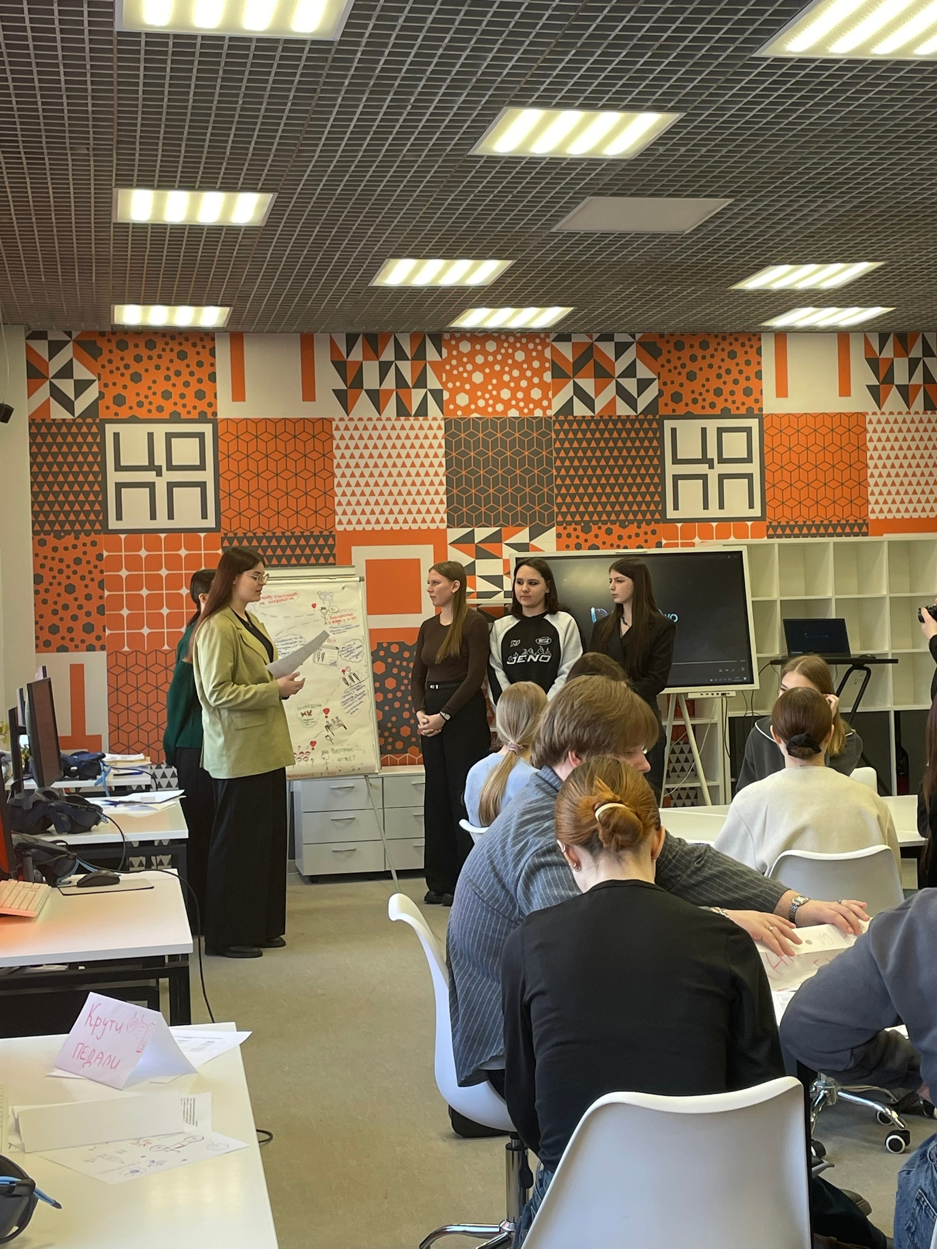 Первая часть мероприятия прошла в формате «Мировое кафе. Студенты были разбиты на команды и обсуждали ключевые вопросы за столами, меняя состав групп. Это обеспечило активное вовлечение каждого участника в процесс, формирование новых подходов к задачам и создание творческой атмосферы.