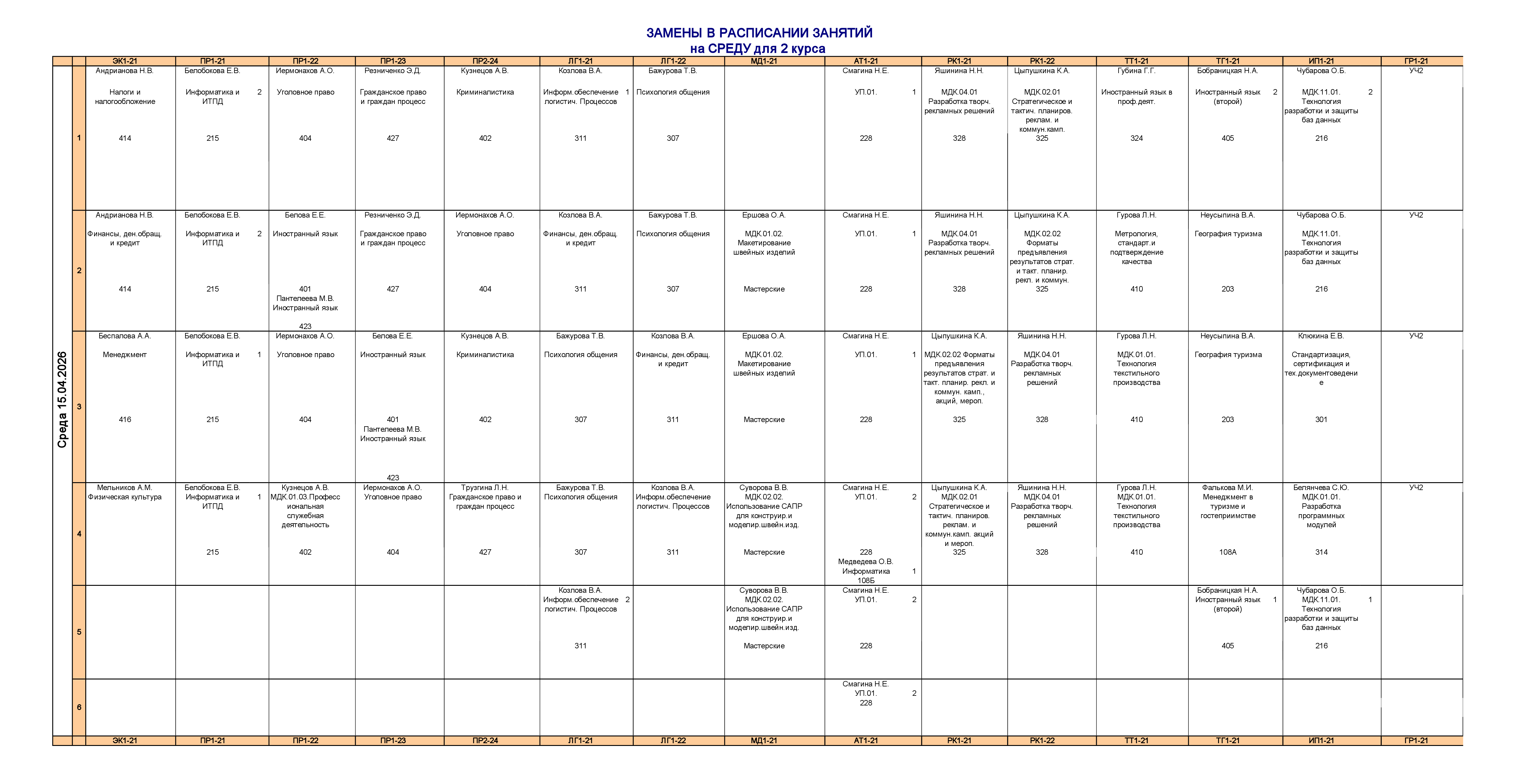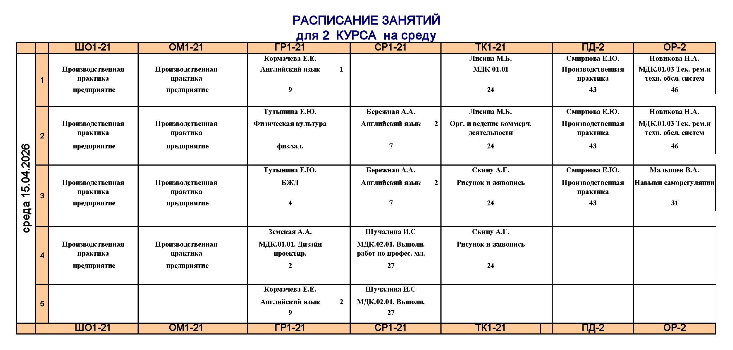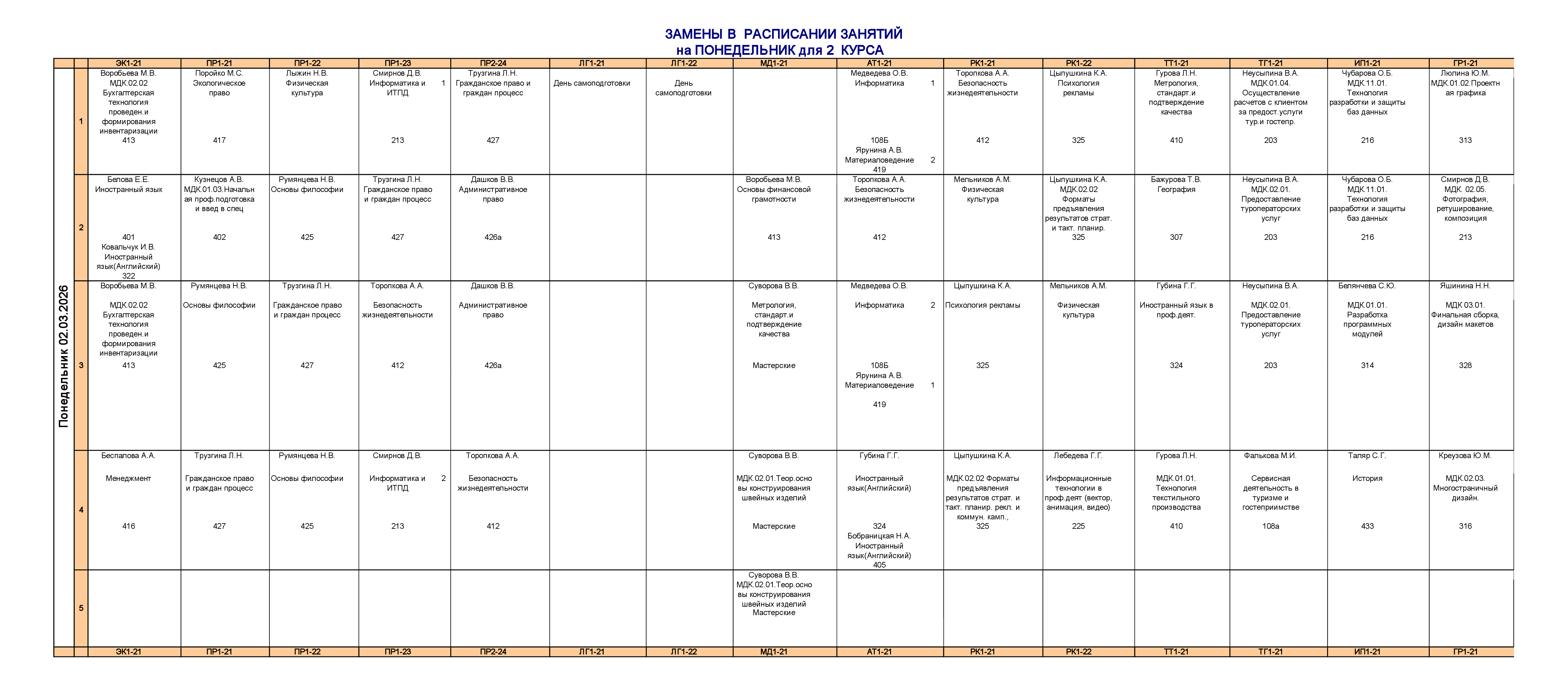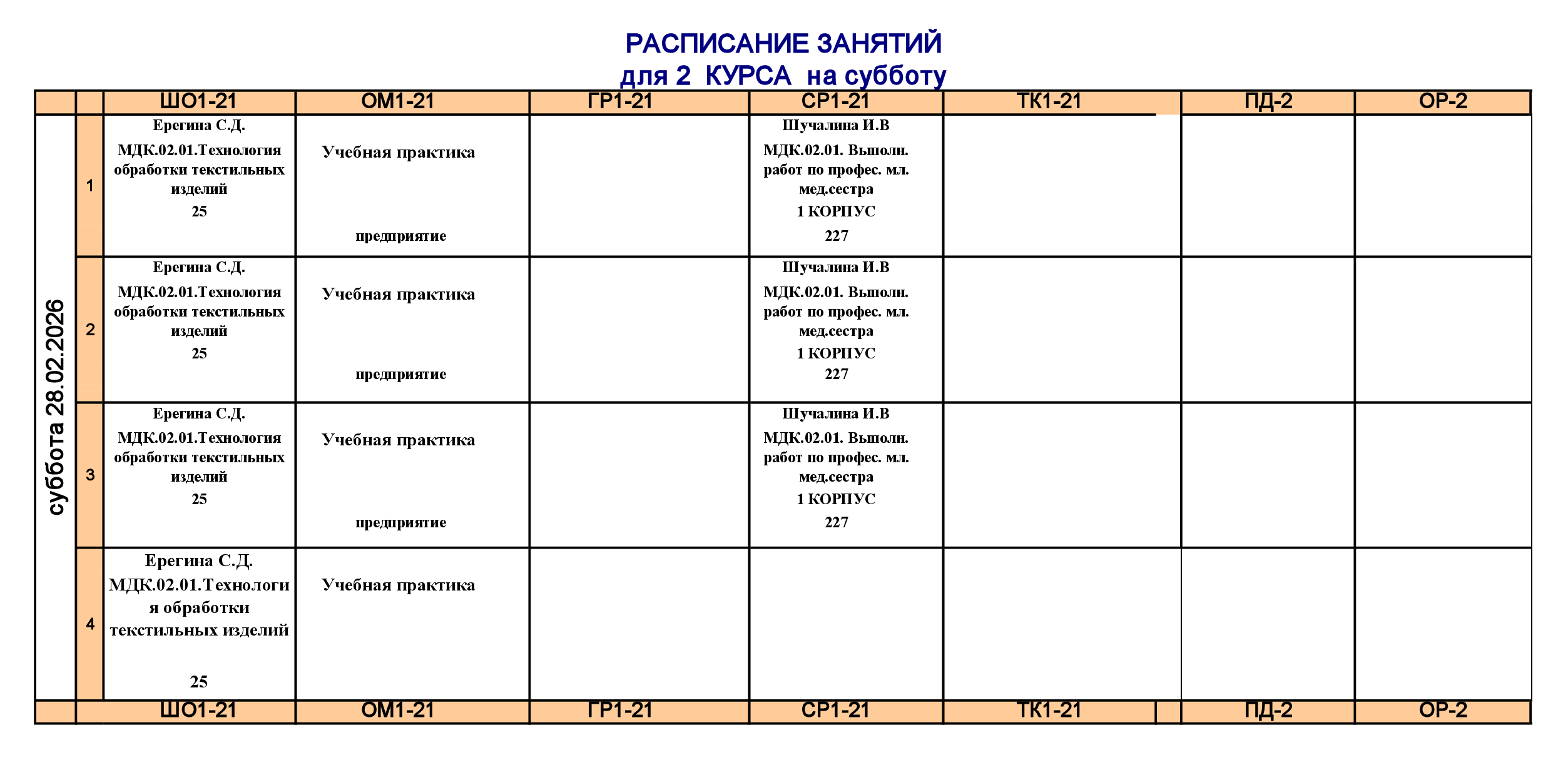 Расписание занятий для учебного корпуса №2