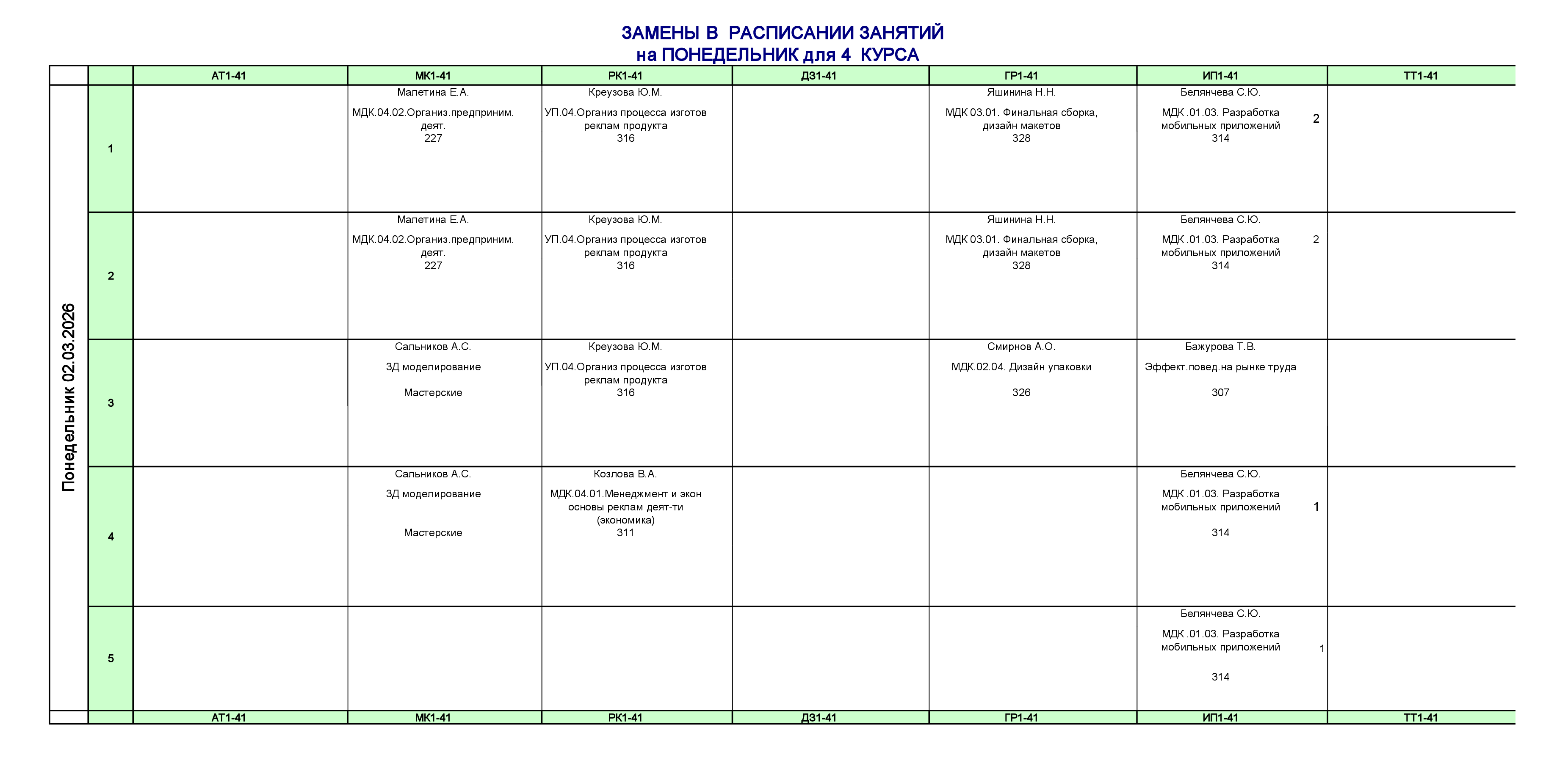 Расписание для очного отделения
