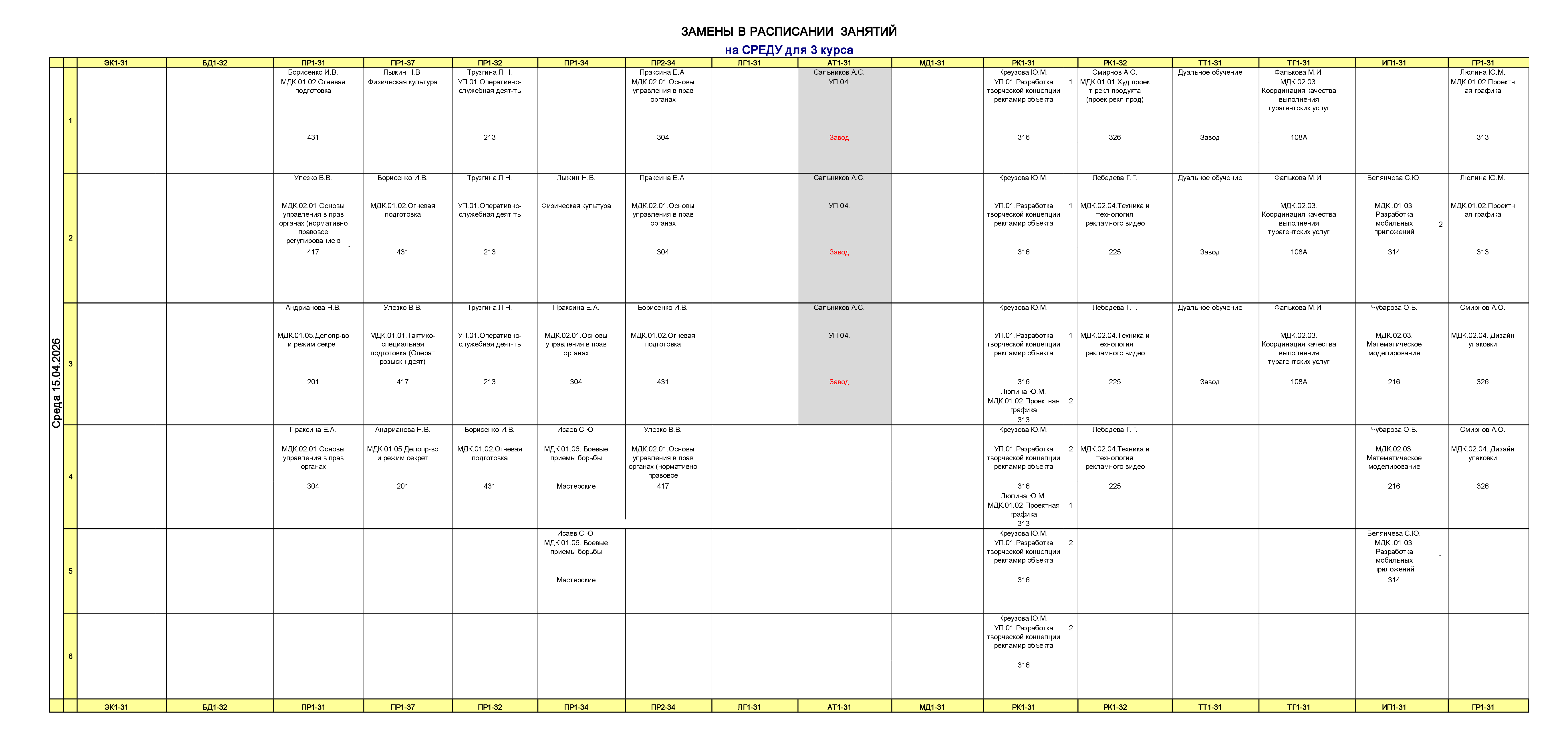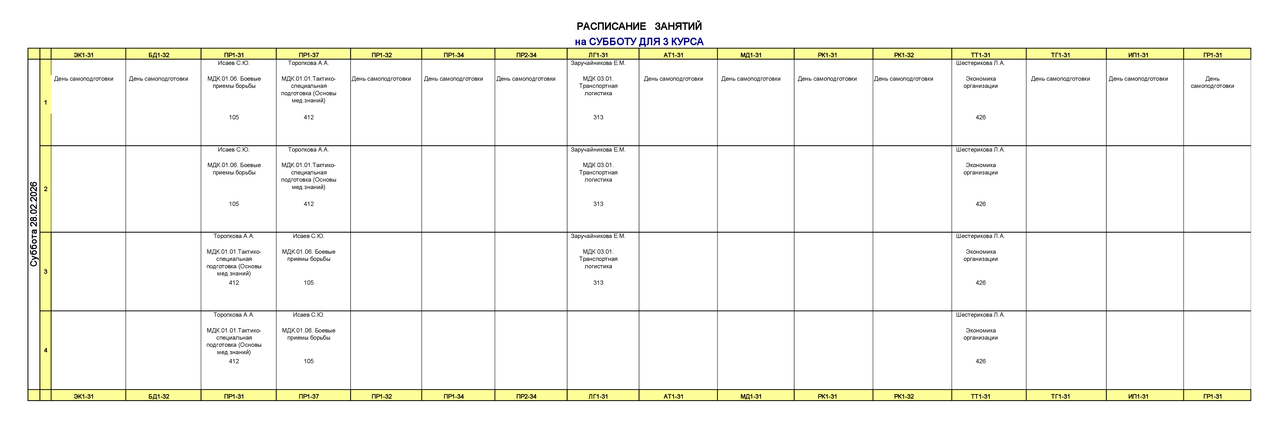 Расписание для заочного отделения