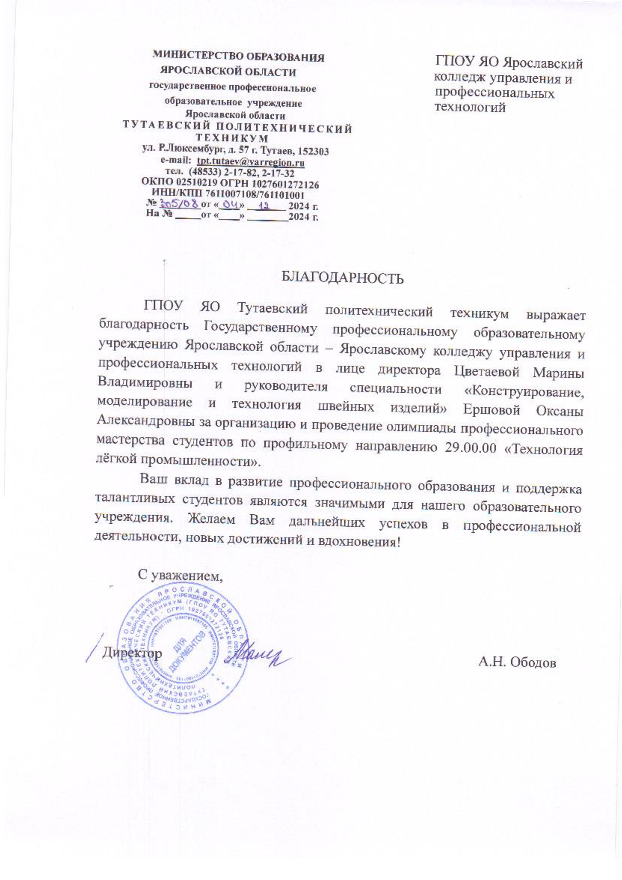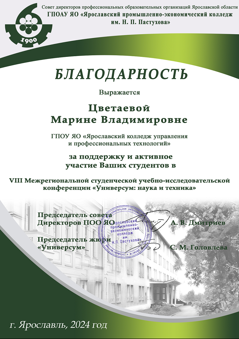 ГПОУ ЯО Ярославский колледж управления и профессиональных технологий